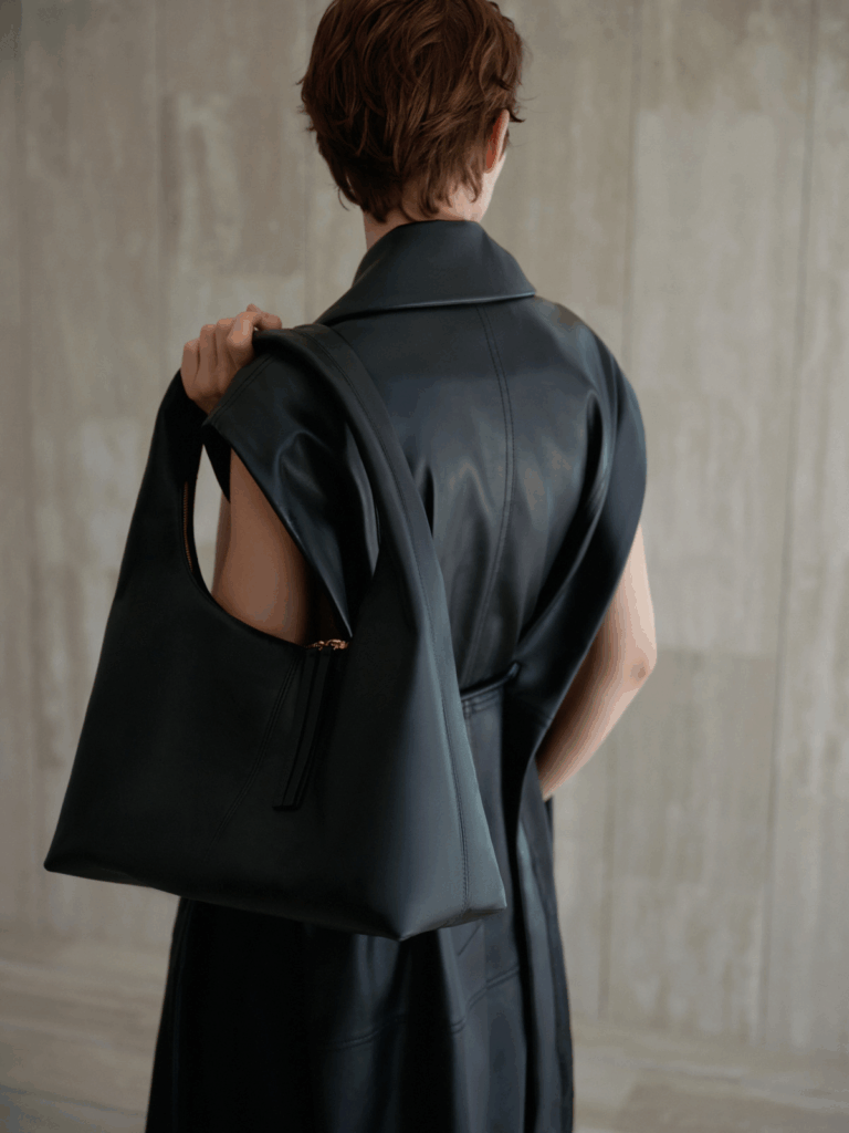 - Hvóya — багатофункціональні tote-моделі з м’якої матової шкіри.
