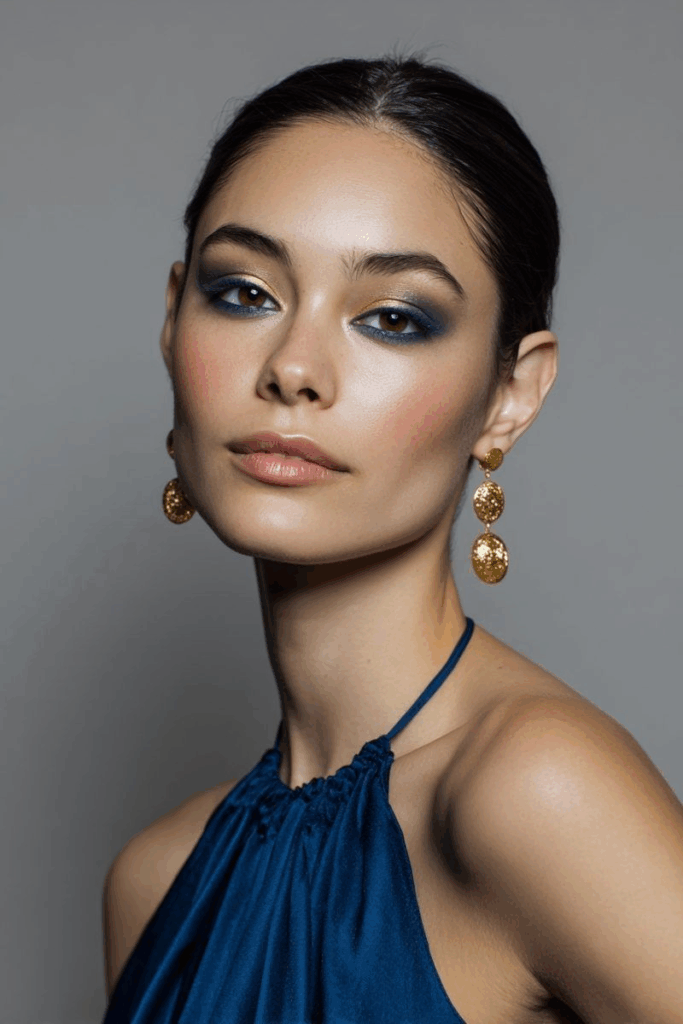 - Блакитна імла: використовуйте цей відтінок для макіяжу очей. Це може бути м’який акцентний колір на рухомій повіці, або ж “електричний баклажан” у вигляді тонкої стрілки, нанесеної поверх класичної чорної чи коричневої. Такий візаж додасть погляду виразності.
